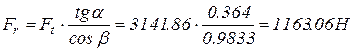 В зацеплении действуют окружная сила Ft, радиальная сила Fr, и осевая сила Fа.