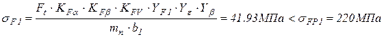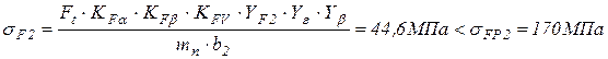 Так как σFM < σFPM, то при изгибе максимальной нагрузкой прочность зубьев обеспечена.