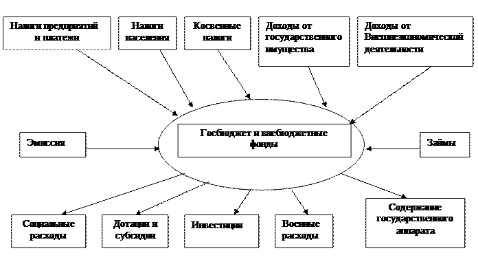 Госбюджет и внебюджетные фонды являются главным каналом перераспределения чистого национального продукта. Это наглядно демонстрирует схема (рис.10.2).