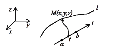 в пространстве может быть задана параметрическими уравнениями (рис. 12):