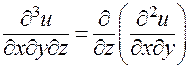 Те из частных производных второго и более высоких порядков, у которых дифференцирование ведется по различным переменным, называются смешанными. Так, в последнем примере первые две из частных производных третьего порядка являются смешанными.