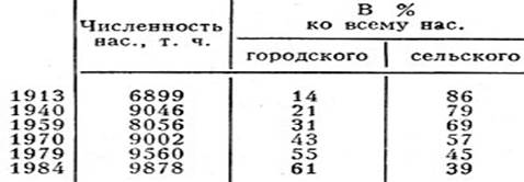 В 1966г. городское население БССР насчитывало 3,3 млн. человек (39% населения), а в 1985 г.-6,2 млн. (62%). Статистические данные свидетельствуют о процессе урбанизации (рост городского населения), появлении новых городов - Солигорска, Новополоцка, Светлогорска, быстрых темпах жилищного строительства (многоблочное и панельное строительство). Урабанизационным процессам способствовали открытие больших запасов калийных солей в Солигорском районе, что позволило развернуть в республике крупномасштабного производства минеральных удобрений, развитие химической и нефтехимической промышленности и строительства ряда крупных предприятий этих отраслей (нефтеперерабатывающий завод в Новополоцке, Светлогорский завод искусственного волокна).
