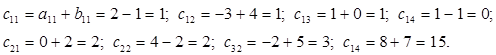 Вычислим элементы матрицы С = А + В, складывая элементы исходных матриц, стоящие на одинаковых местах:
