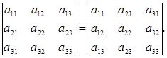 1. Определитель не изменяется при транспонировании, т.е.