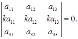 5. Определитель, две строки которого пропорциональны, равен нулю: