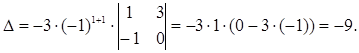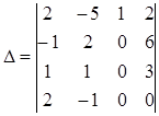 Преобразуем определитель так, чтобы три из четырех элементов какой-либо строки или столбца стали равными нулю. Для этого воспользуемся свойством 8. Его особенно удобно применять, если в определителе существует элемент, равный ±1. Выберем в качестве такого элемента а 13 = 1 и с его помощью обратим все остальные элементы 3-го столбца в нуль. С этой целью: