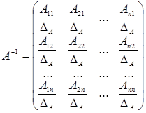 то есть ее элементами являются алгебраические дополнения к элементам транспонированной матрицы А, деленные на ее определитель.
