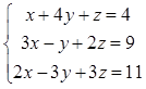 Из последнего уравнения получаем, что у = 0. Подставляя это значение в первое и второе уравнения, находим остальные неизвестные: z = 3, х = 1.