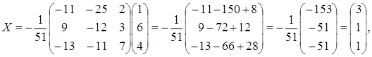 , то исходная система превращается в матричное уравнение АХ = В, решение которого Х = А -1 В. Следовательно,