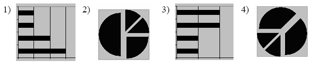 После выполнения вычислений была построена диаграмма по значениям диапазона ячеек A2:D2. Укажите получившуюся диаграмму.