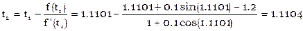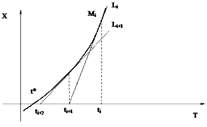 Касательная пересечет ось ОТ в точке (ti+1,0), или из уравнения касательной