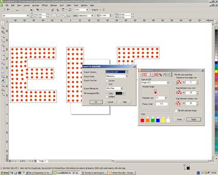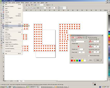!!! Для того чтобы избежать возможных сбоев в дальнейшей работе с макетом вывески (некорректный экспорт макета из CorelDraw в AutoCAD), необходимо производить расчёт количества светодиодов единовременно, без дополнительных сохранений. Так же следует избегать копирования/вставки элементов!!!