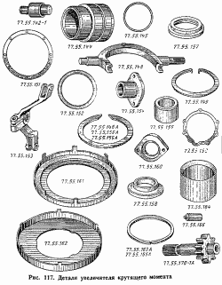 Увеличитель крутящего момента трактора ДТ75МВ применяют при повышении тяговых усилий на 1и2 передачах. В результате получают две резервные передачи переднего хода и одну заднего. Его устанавливают между сцеплением и коробкой передач. Он состоит из планетарного редуктора, сцепления и обгонной муфты (муфты свободного хода).