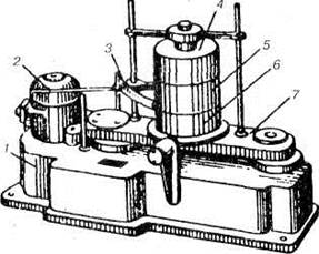 Тонкость помола определяют ситовым анализом с помощью прибора (рис. 4.1), который состоит из станины 1, шатунно-эксцентрикового механизма 7, кулачков 3, набора цилиндрических сит 5 и электродвигателя 2.