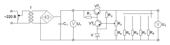 используется электронный цифровой вольтметр ВК 2-20. Выходное напряжение