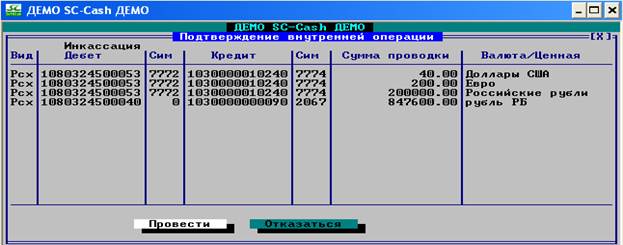 Рис.13 – Окно формы «Подтверждение внутренней операции инкассации»