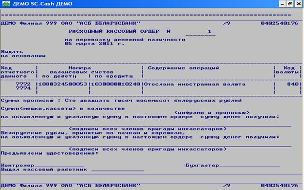 Рис.14 – Фрагмент отчета по внутренней операции инкассации