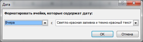 - При выборе условия Дата можно выбрать отношение выделяемых ячеек к сегодняшней дате (Вчера, Сегодня, Завтра, За последние 7 дней и т.д.) и выбрать способ выделения
