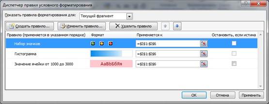 - При наличии нескольких правил для одного диапазона кнопками Вверх