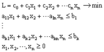 В задачах линейного программирования всегда необходимо найти минимум (или максимум) линейной функции многих переменных при линейных ограничениях в виде равенств или неравенств.