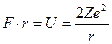 Потенциальная энергия на расстоянии rмежду частицами или работа отталкивания будет выражаться как: