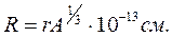 , где r-область действия ядерных сил, выраженных в единицах Ферми.