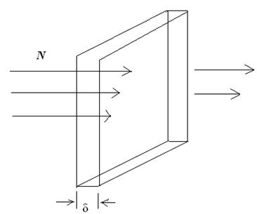 , где dN - число столкновений, δ – толщина пластинки, n – количество ядер в пластинке, следовательно, число провзаимодействовавших частиц равно:
