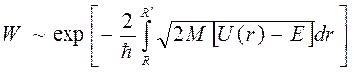 – частицы через барьер с энергией Е пропорциональна коэффициенту прозрачности барьера W, которая имеет вид: