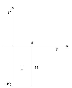 . Если сравнить квадрупольный момент с поперечными размерами системы, то видно, что он мал, откуда следует, что основное состояние дейтрона почти сферически симметрично. Следовательно, ядерное взаимодействие между протоном и нейтроном почти центральное. Итак, нашей задачей является система (р, р), (n, n) или (n, р). В (р, р), (n, n) – нет связанного состояния, а в (n, р) - есть одно связанное состояние – дейтрон. Будем считать, что потенциал ядерного взаимодействия – это потенциал притяжения и в первом приближении не зависит ни от спина, ни от скорости частицы, а является только функцией расстояния частицы. Из этого вытекает, что на вид потенциала накладываются небольшие ограничения, т.е. ядерные силы не критичны к самому виду потенциала, необходимо только, чтобы потенциал быстро убывал с расстоянием, т.е. нужен маленький радиус действия и большая величина на расстояниях меньших 1Фм.