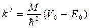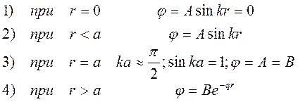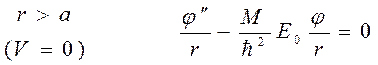 Уравнение позволяет найти лишь один параметр, относящийся к потенциалу: при известном V(r) дает собственные значения Е0 свободного состояния, равное энергии связи дейтрона или при известном Е позволяет найти V0 и ширину ямы, не определяя сами эти величины. Это мы и сделаем. Очевидно, что устойчивые состояния существуют при условии, что Е=-Е0. Тогда для первой области