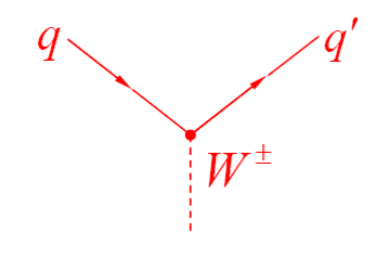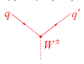 Кварки участвуют в слабых взаимодействиях излучая или поглощая W± бозоны, при этом изменяется тип (аромат) кварка, цвет кварка остаётся без изменения