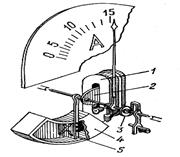 При измерении направления тока в обмотке меняется полярность сердечника, поэтому при любом направлении тока сердечник втягивается внутрь катушки и, стрелка отклоняется всегда в одну сторону.