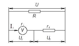 где U – полное подводимое напряжение, UV – падение напряжения, приходящееся на вольтметр.