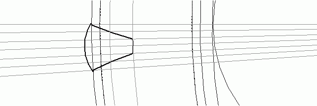 3. Привязываясь к сетке вспомогательных линий, постройте контур профиля выреза между зубьями (рис. 3.58). Вместо эвольвент создайте обычные дуги (команда Дуга по 3 точкам). Эти дуги обязательно должны проходить через точки зацепления, находящиеся на пересечении вспомогательной делительной окружности, а также первой и пятой вспомогательных прямых соответственно (учитывая только те прямые, которые откладывались под углом γ/8 от горизонтали). При желании вы можете также создать скругления на головках и ножках вырезаемых зубьев. Завершите редактирование эскиза.