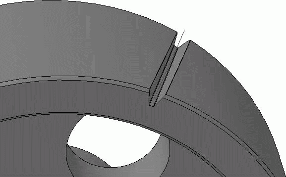 Данный способ подходит для программной реализации зубчатого венца, когда можно создать цикл, в котором одна за другой будут строиться смещенные плоскости, а в них – эскизы сечений, смещаемые на угол α. Создав операцию вырезания по сечениям, вы получите достаточно точный вырез между зубьями, однако этому методу свойственны некоторые недостатки. Материал, который вырезается между двумя смежными эскизами, все равно вырезается по прямой. Из этого вывод – чем больше эскизов, тем точнее получатся зубья в колесе, но при слишком большом количестве зубьев существенно затрудняется их построение и замедляется перестроение зубчатого венца. Хотя, в принципе, для не слишком широких колес достаточно всего 3–5 эскизов.