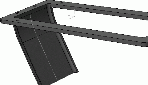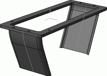7. Аналогично создайте и заднюю стенку корпуса редуктора. Эскиз кинематической операции будет иметь ту же форму, что и на рис. 3.72, только разместится на левой стороне фланца (в режиме редактирования эскиза – в нижней части эскиза). Направляющую можно скопировать с главного вида чертежа. Полученная стенка показана на рис. 3.75. Направляющие обеих операций кинематического «приклеивания» больше не будут использоваться, поэтому их можно спрятать.