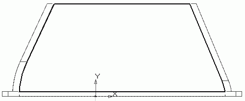 8. Теперь можно перейти к построению боковой стенки. Ее можно выполнить обычным выдавливанием на величину толщины стенок, просто заполнив материалом детали промежуток между задней и передней стенками корпуса. Эскиз операции выдавливания должен повторять контуры краев уже построенных стенок и фланца корпуса (рис. 3.76). Опорная плоскость эскиза – внутренняя торцевая грань фланца (вдоль его длинной стороны). Полагаю, вам будет несложно его построить.