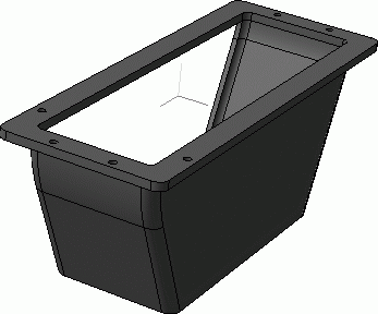 3. После завершения редактирования эскиза создайте фланец, выдавив эскиз с помощью команды Операция выдавливания в сторону, противоположную нормали, на расстояние 13 мм (толщина фланца корпуса). Лучше в поле Расстояние 2 на панели свойств ввести значение 13, 01, а не ровно 13. Это связано с тем, что в дальнейшем мы будем «приклеивать» к фланцу стенки и другие элементы корпуса, и будет лучше, если они будут немного пересекаться (при «приклеивании» встык позже могут возникнуть ошибки расчета геометрии модели, не зависящие от пользователя).