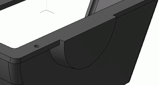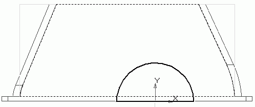 11. Теперь создайте точно такой же эскиз на внешней грани боковой стенки корпуса (на той грани, относительно которой и была смещена на 40 мм вспомогательная плоскость). Только радиус полуокружности сделайте немного больше, например 106 мм, чтобы место крепления крышки было сформировано с небольшим уклоном. Обязательно соедините концы построенной дуги отрезком.