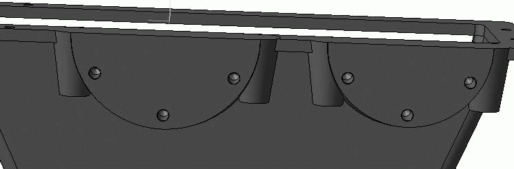· операции добавления материала по сечениям, формирующие места крепления крышек и бобышки на корпусе;