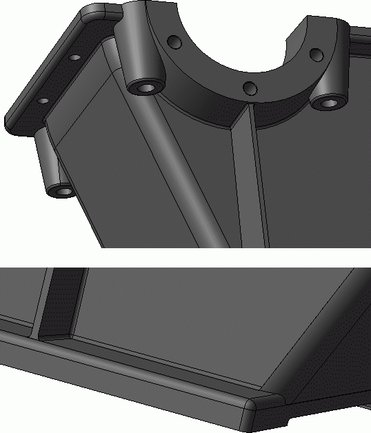 29. Для большей реалистичности модели добавьте скругления внутри и снаружи корпуса, на кромках, фланцах и пр. (рис. 3.89). Радиусы скруглений определяйте конструктивно. Постарайтесь за один вызов команды Скругление выполнять как можно скруглений ребер с одним радиусом.
