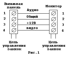 Общая структурная схема подключения видеодомофона приведена на рисунке 1.