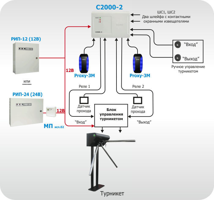 В этом режиме работы может использоваться правило antipassback, двойная идентификация, доступ по правилу двух (или более) лиц. Оба считывателя в данном режиме работы прибора работают независимо друг от друга. Это означает, что при открытии свободного доступа (или, наоборот, закрытии доступа) на одном считывателе, второй будет функционировать в дежурном режиме, пока на него тоже не подадут соответствующую команду.