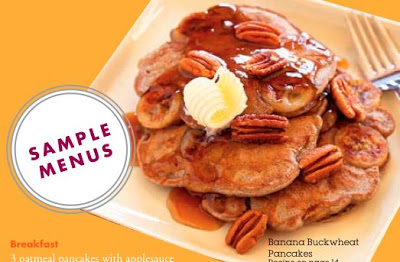 | овсяные оладьи (3 штуки) с яблочным соусом, обогащенный кальцием апельсиновый сок, свежий фрукт | овсяная каша с корицей и изюмом, полстакана обогащенного соевого молока, 1 тост с 1 столовой ложкой миндального масла-спреда (как крем из перетертых миндальных орехов), половина грейпфрута |