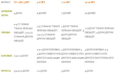 ДНЕВНОЙ НОРМАТИВ ПИТАНИЯ В ЗАВИСИМОСТИ ОТ ВОЗРАСТА ДЕТЕЙ