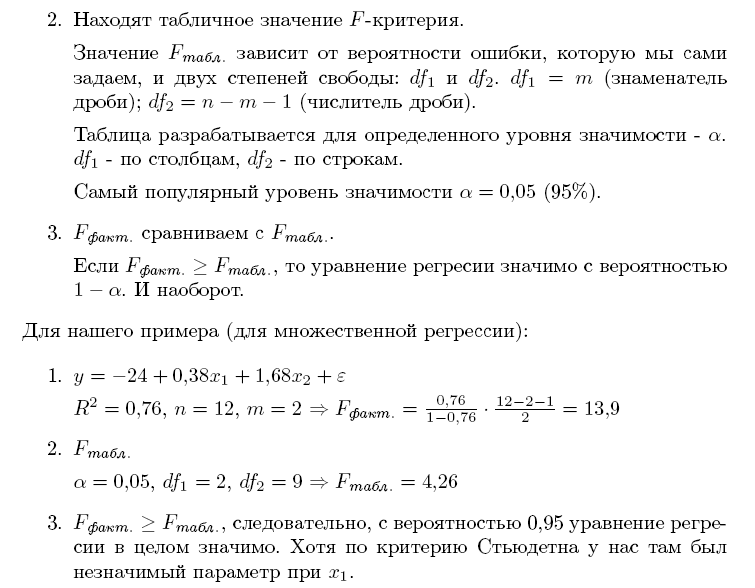 Величина F – критерия связана с коэффициентом детерминации R2. Значение F – критерия можно выразить следующим образом: