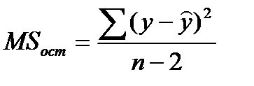 | Остаточная | n– 2 | | | F табл = F(α;1,n-2) |
