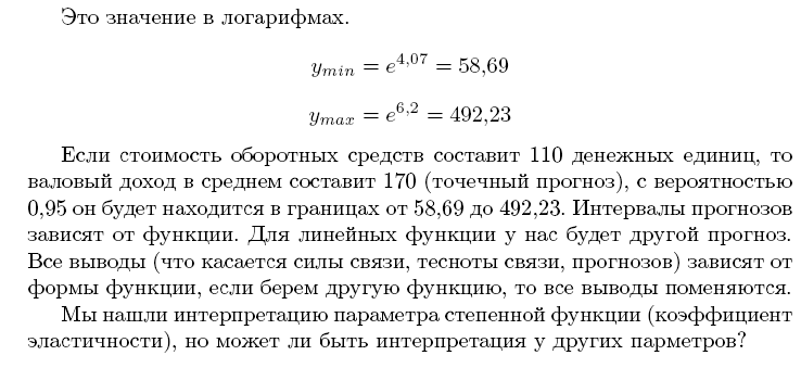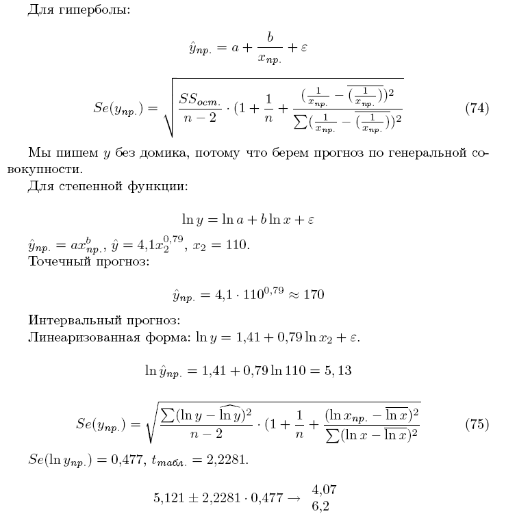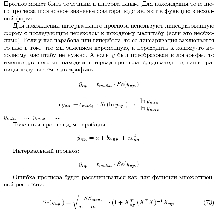 Прогнозирование по нелинейным по параметрам функциям регрессии (степенной, показательной)