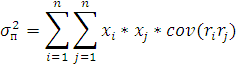 Определим дисперсию портфеля, в формуле которой используется двойное суммирование: