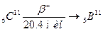 с периодом полураспада 11,7 минут. При позитронном распаде в ядре распадается одиночный протон: